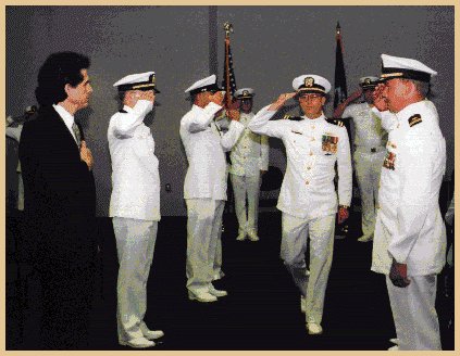 This picture was taken at my retirement ceremony May 3, 1997. As a final farewell, my shipmates “Piped me over the side”.